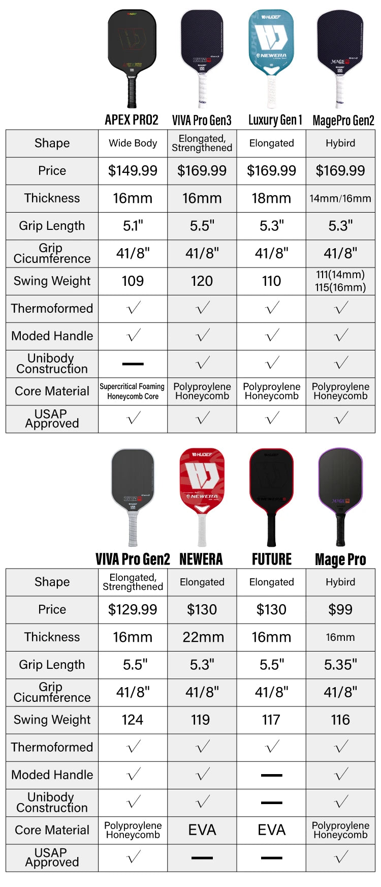 Every pro pickleball player has their preferences. Some pros choose popular brands, and others go for advanced technologies, power, control, and spin. For the pro-player experience, select a paddle on HUDEF’s pro categories, the NEWERA, and the Pro Series.