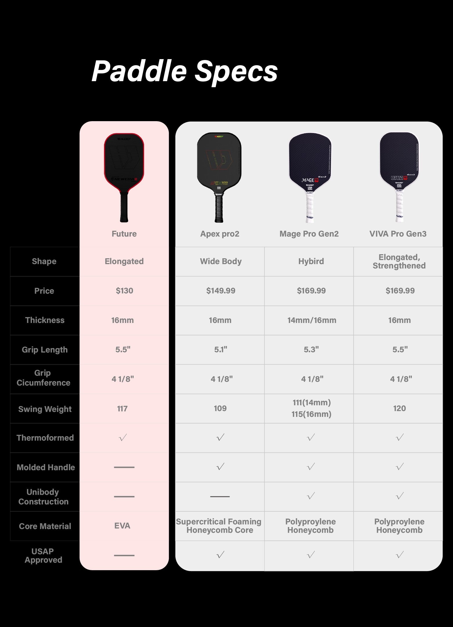 FUTURE is the first raw carbon fiber surface full foam core pickleball paddle. The perfect combination of the foam core and the elongated shape enables it to dominate the court. The foam core provides the paddle with great power, and the simple design of the paddle face, with the red edge guard, is eye-catching. A lighter weight offers a definite advantage at the net. For players who pursue power, this paddle is the best choice.
