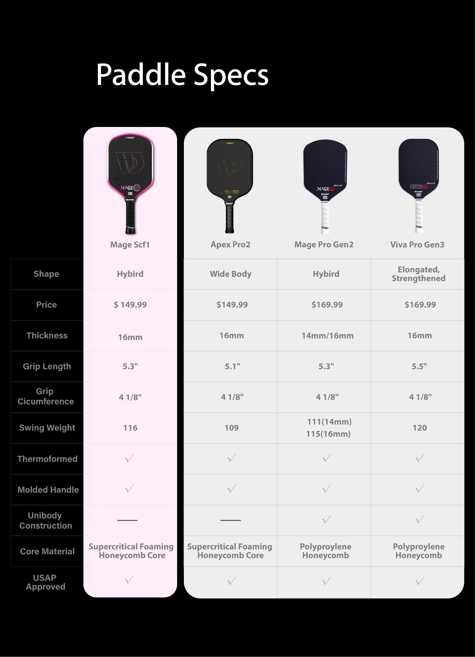 It offers a sublime, soft touch for delicate dinks and resets at the kitchen line, but when you step up to drive, you'll feel the explosive power and hear that decisive pop. Built with a wide-body shape and a balanced, mid-weight feel (8.2-8.4 oz), the Apex Pro2 feels fast in your hand and guarantees a massive, forgiving sweet spot for confident, all-court play.