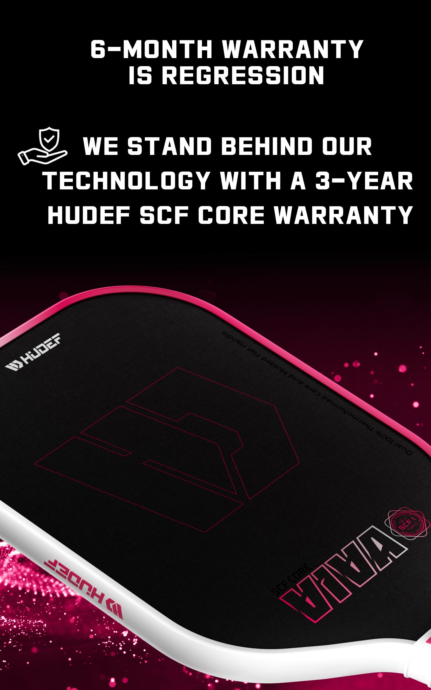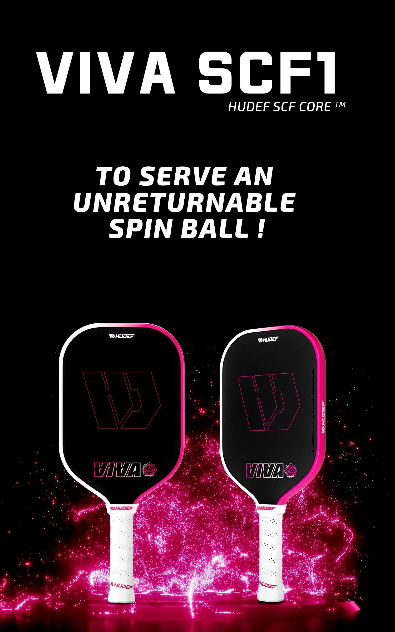 Limited Edition: Pre-Approval Prototype Model - Hudef Viva SCF1 Supercritical Foam Honeycomb Elongated Pickleball Paddle Pink 16mm thickness (includes paddle cover, lead tape, eraser and overgrip) Original Price: $169.99