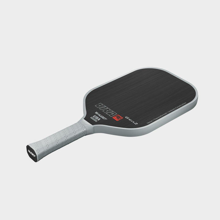 The Hudef Viva Pro Gen2 features premium Toray T700 raw carbon fiber face with patent-pending 100% thermoforming technology that creates seamless unibody construction. The foam-injected core and handle design eliminates weak points while optimizing power transfer and vibration dampening. The high-performance polypropylene honeycomb core delivers exceptional responsiveness and consistent ball feedback, providing the perfect balance of power and control for competitive play.